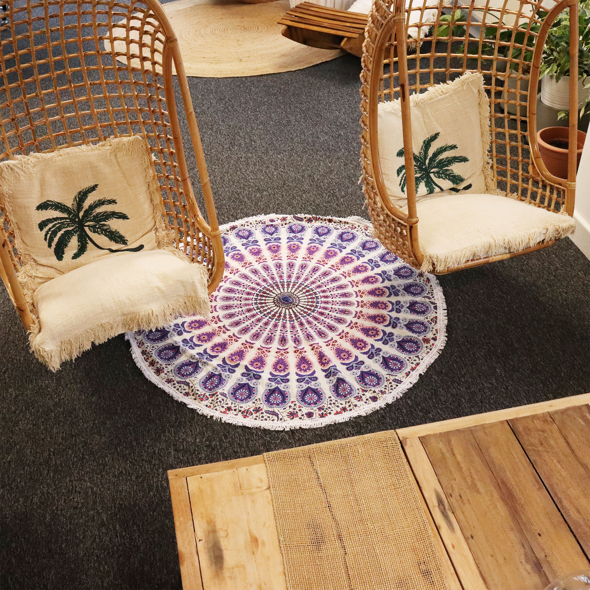 Each item is individually crafted, giving every Roundie its own character—perfect for customers seeking authentic, artisan-made décor. The peacock symbolism represents beauty, renewal and spiritual awakening, adding greater meaning to the alluring mandala design. Many customers enjoy displaying mandalas for a sense of harmony, focus and uplifting energy within their space.